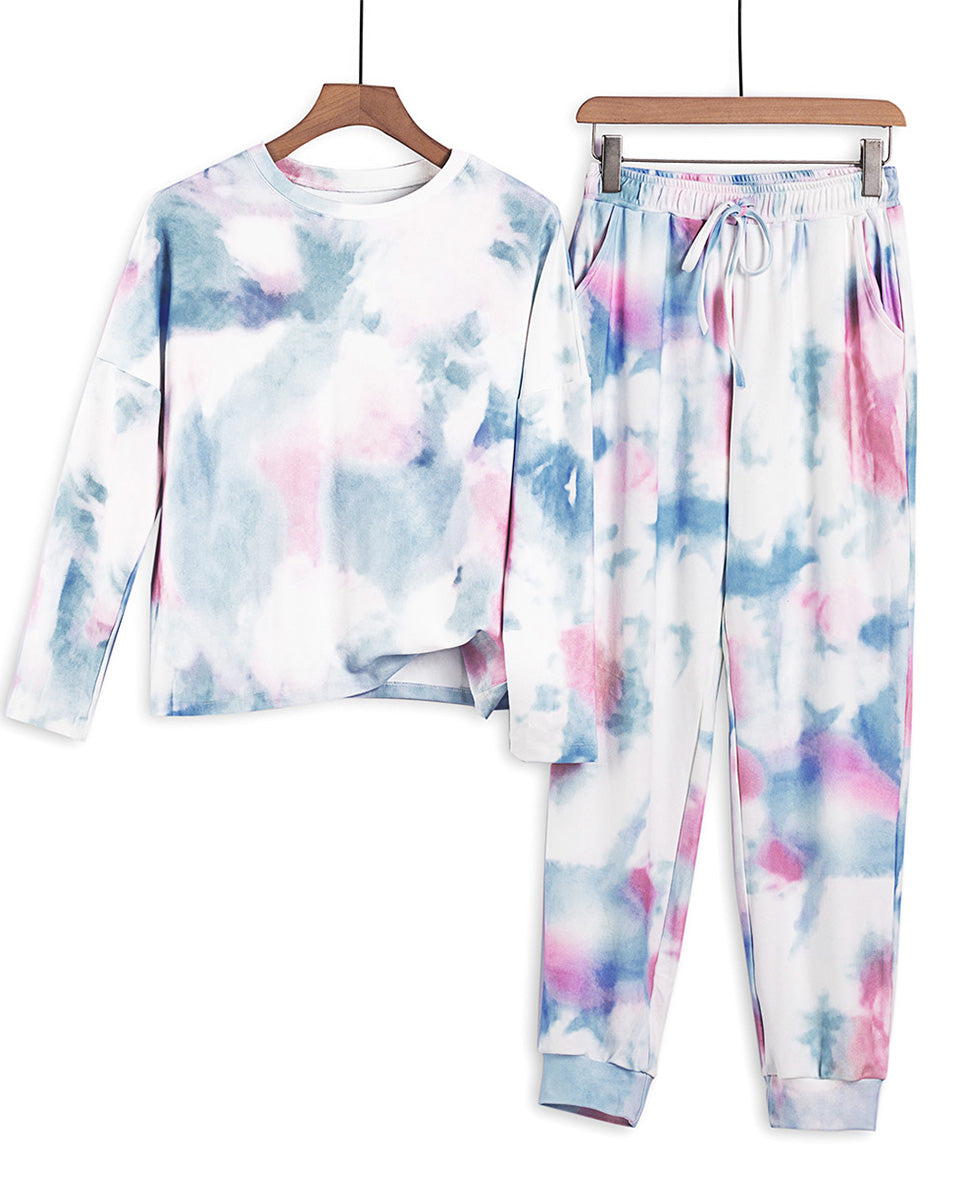 Our light loungewear is bold, sassy and comfy. Keeps you cool in more ways than one. Not only is it colorful and hip in tie dye colorations, but the styling is perfect. This long-sleeved and long pant set is when the A/C is blasting or there is a draft in the apartment.